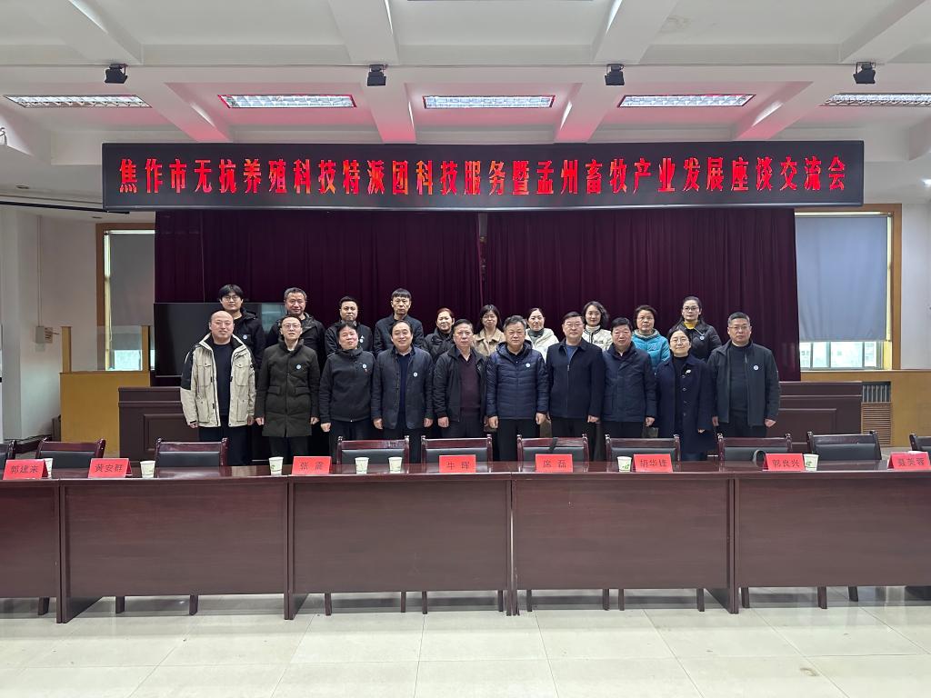 孟州市飞隆动物药业、金玉米公司、康德合作社、裕泰牛场、义奔牛场、有立羊场,信诚牧业等企业代表参加了座谈会。