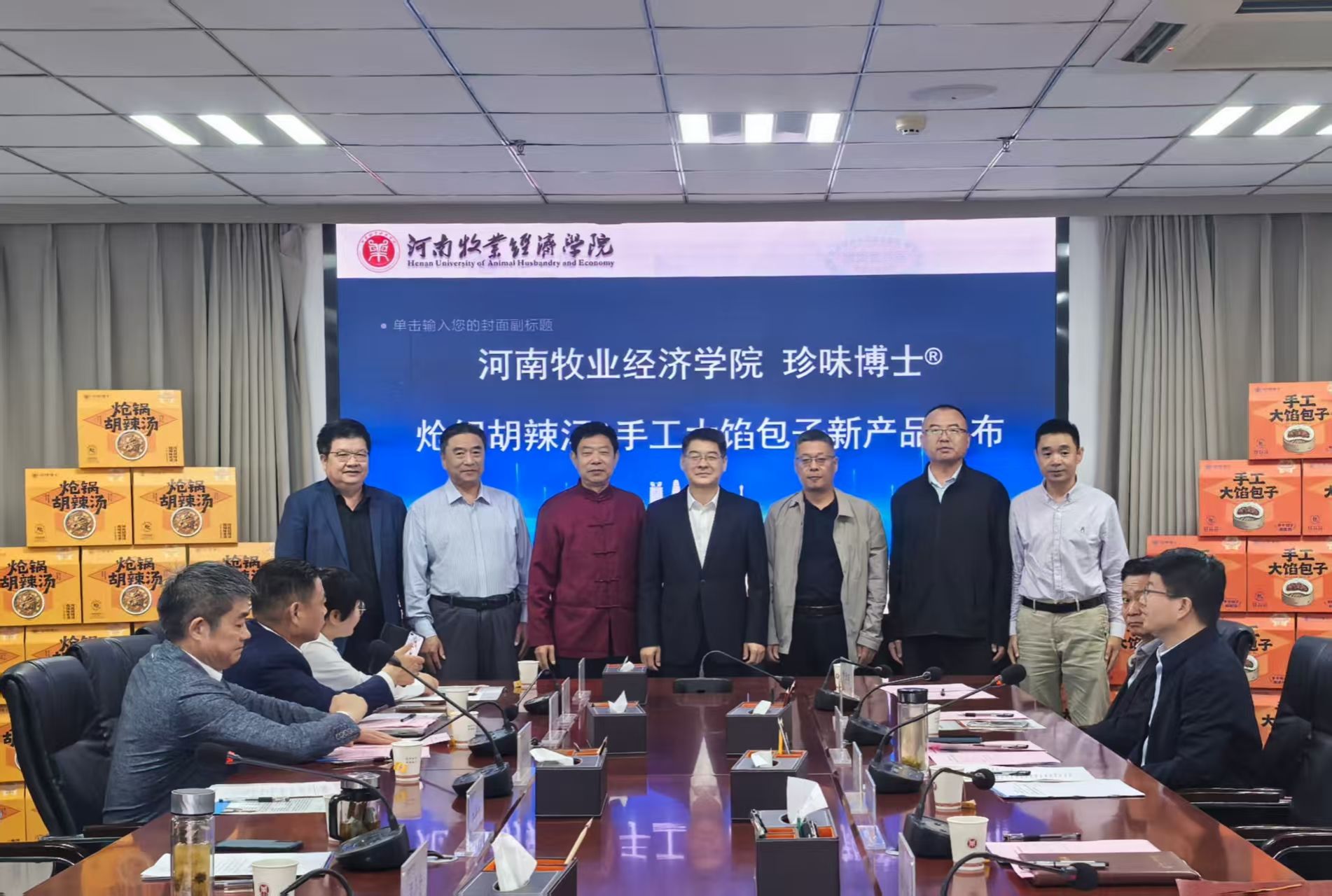 会上,食品与生物工程学院院长邹建详细介绍了新产品开发历程。牛景红现场宣布炝锅胡辣汤、手工大馅包子团体标准正式立项。在全场嘉宾见证下,产品发布仪式启动,两款融合河南饮食文化的新品正式亮相。
