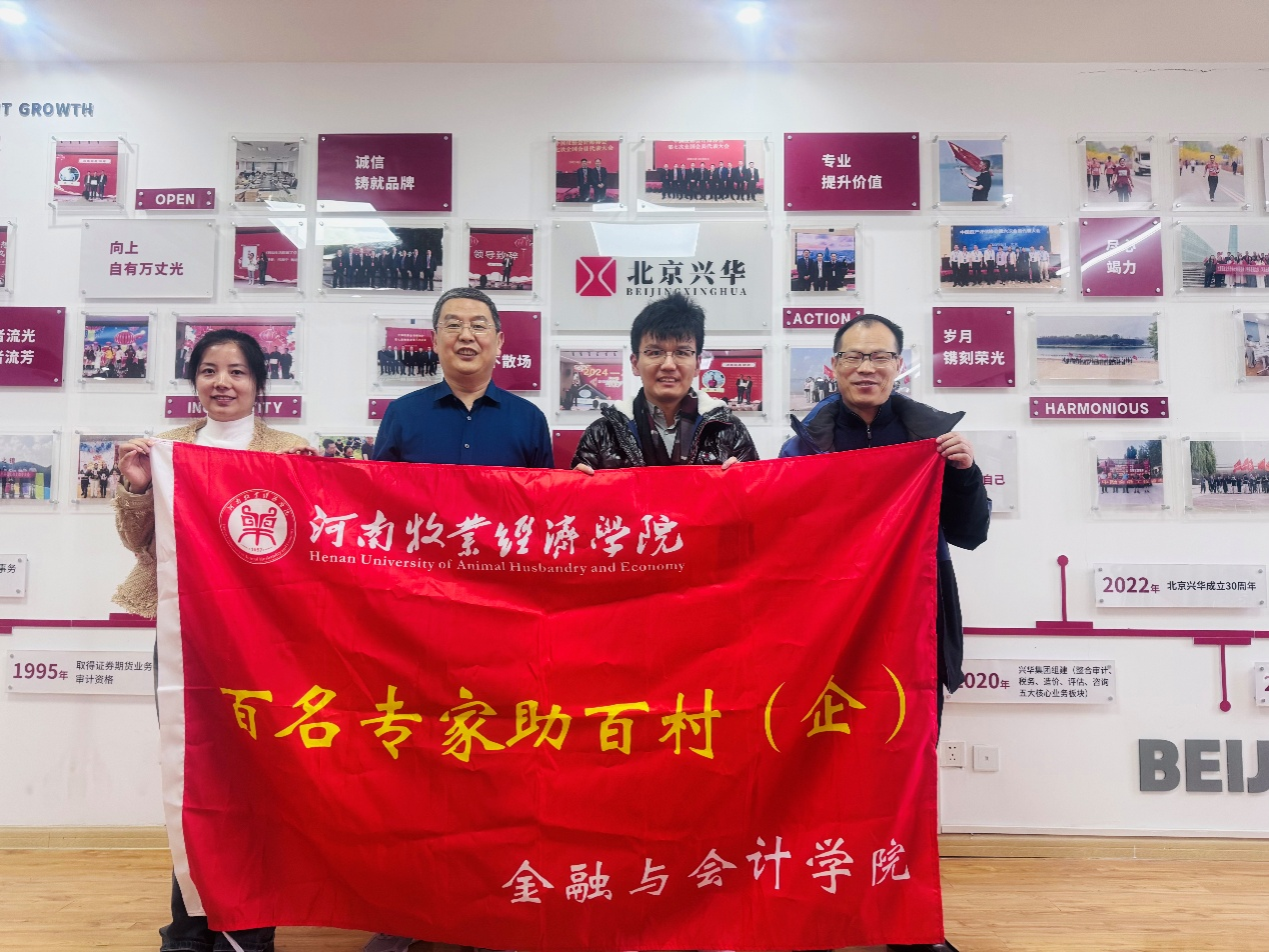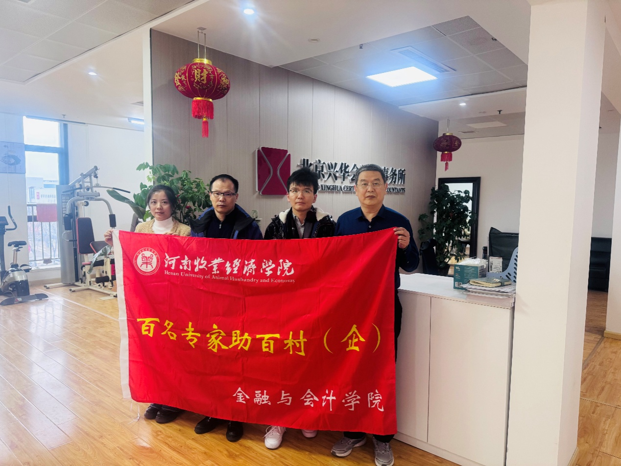 为深入推进“百名专家助百村(企)”工程(“双百”工程)落地见效,积极响应进企业专项行动要求,深化校企协同育人机制,提升应用型财会人才培养质量,强化服务地方经济发展能力。2026年2月26日上午,金融与会计学院管理会计教研室主任樊路青赴北京兴华会计师事务所(特殊普通合伙)河南分所开展调研交流,董事长刘生、高级合伙人陈冲和人事经理徐芳陪同调研,围绕学生实习基地建设、毕业就业拓展、人才培养模式优化等事项进行深入座谈。